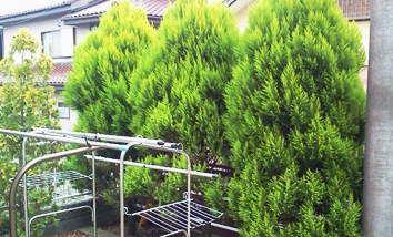こちらは一般家庭によくある風景。伸びすぎてしまったコニファーは刈り込みで切り戻しにくいものなのです。