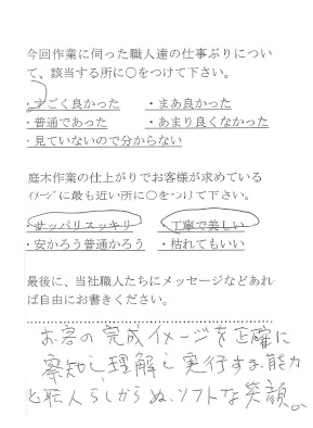 近年同じ職人さんにお願いしております。要望をよく聞いて頂いて居ります。これからも宜しくお願いします。
